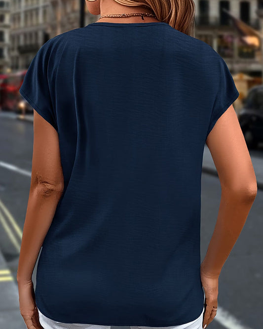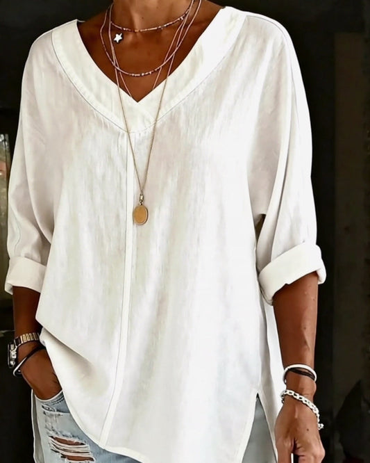 V-Neck Seven-Part Sleeve Split Cotton Linen Top