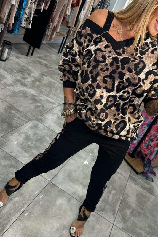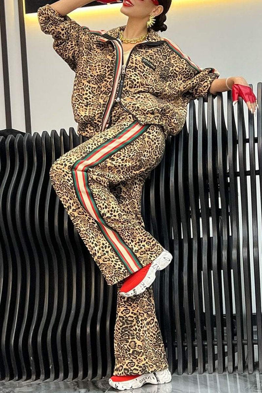 Women's Leopard Print Zip-up Jacket Leopard Print Pant Suit