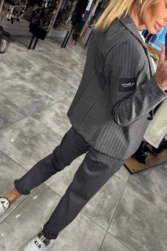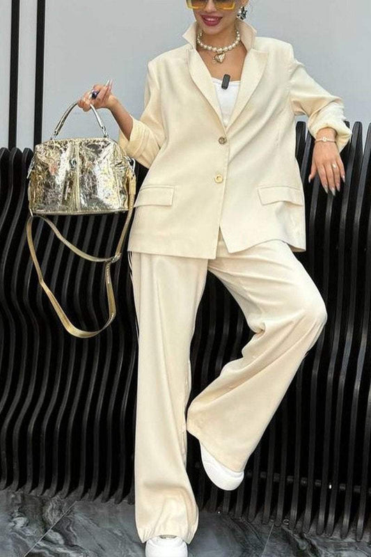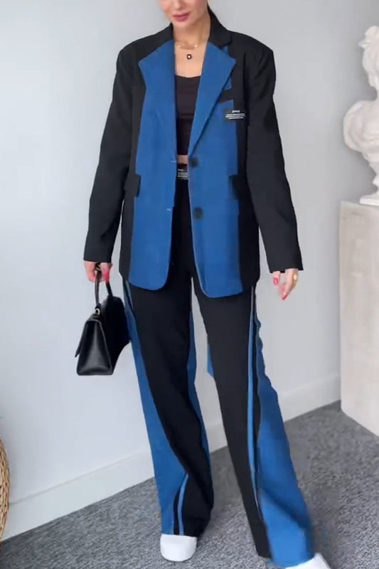 Women's Casual Contrast Blazer and Wide Leg Pants Set