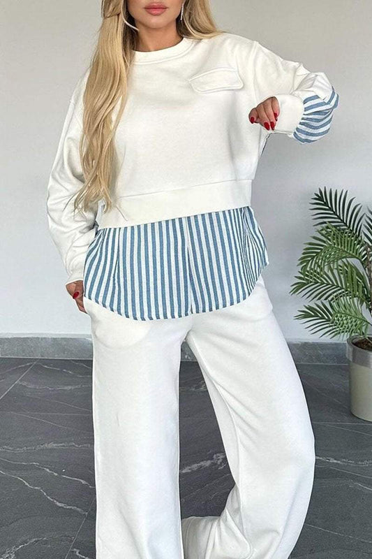 Women's Casual Striped Patchwork Long-sleeved Two-piece Set