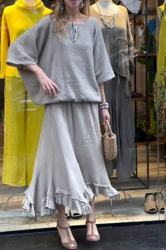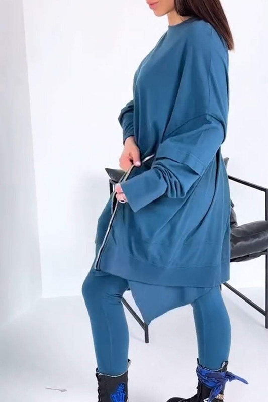 Women's Solid Color Loose Round Neck Top Irregular Skirt Suit