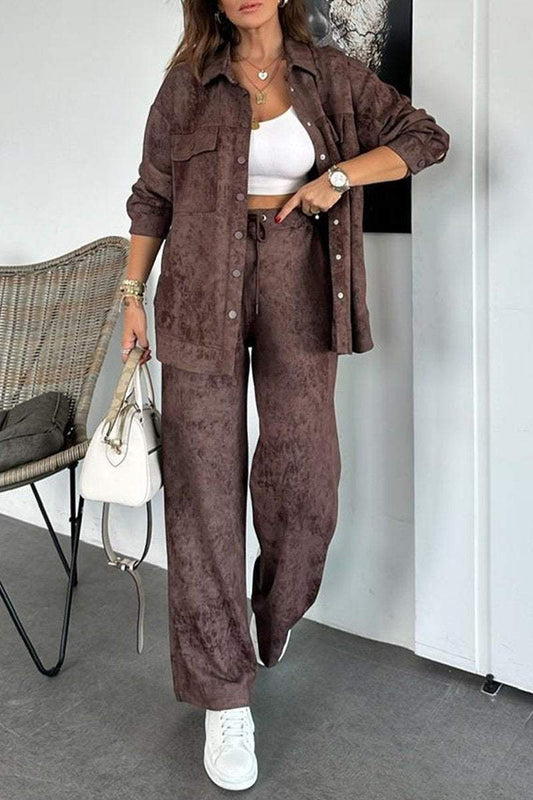 Women's Spring and Fall Sports Casual Solid Color Cardigan Shirt Pants Suit