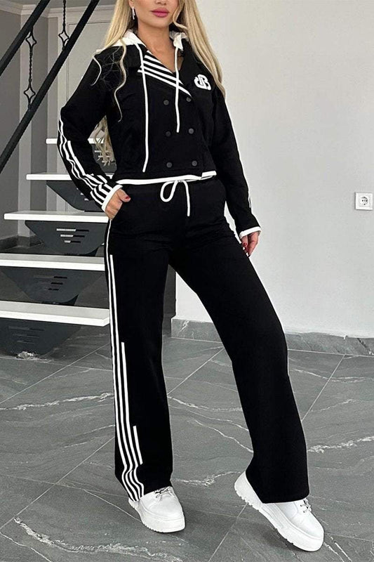 Women's Casual Contrast Color Splicing Web Pants Suit