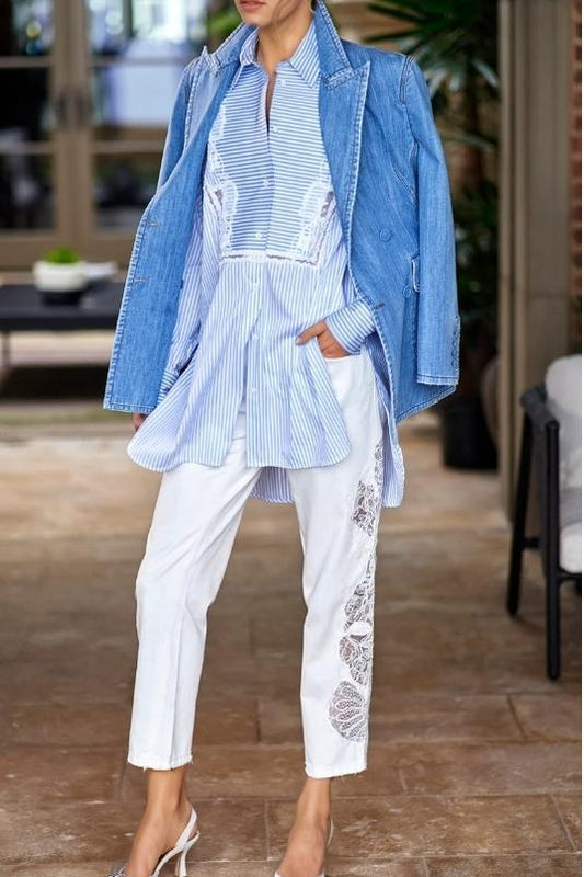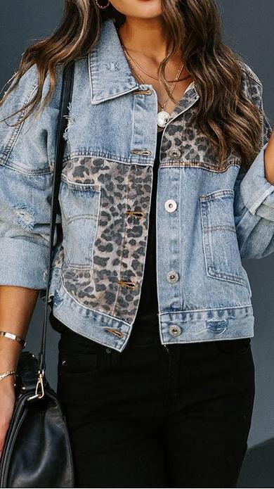 Ladies leopard print fashion print patchwork ripped denim top casual jacket