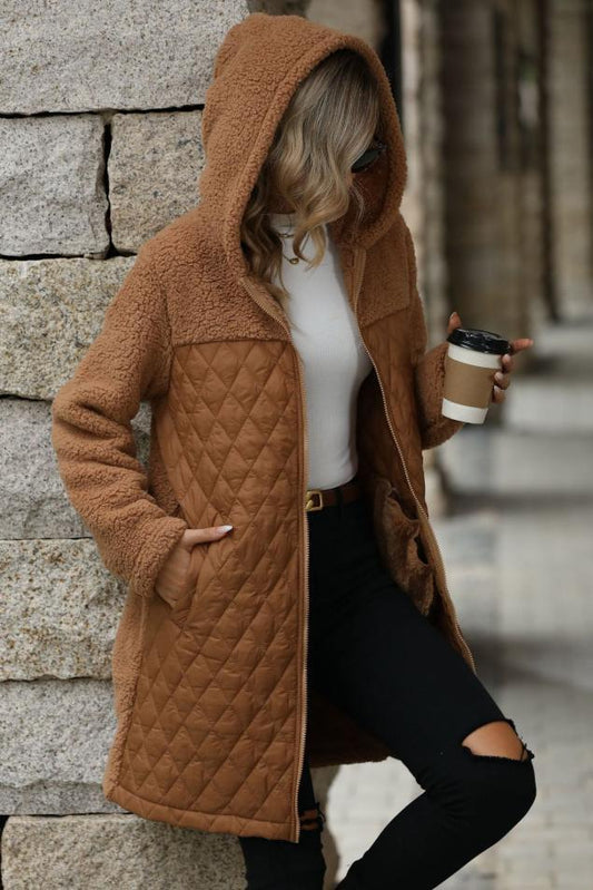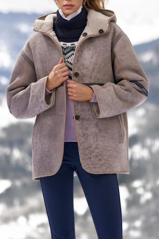 Women's Casual Warm Fur Contrast Hooded Jacket