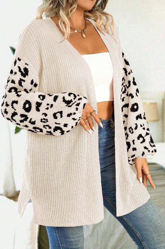 Women's casual sleeve leopard print patchwork knitted cardigan