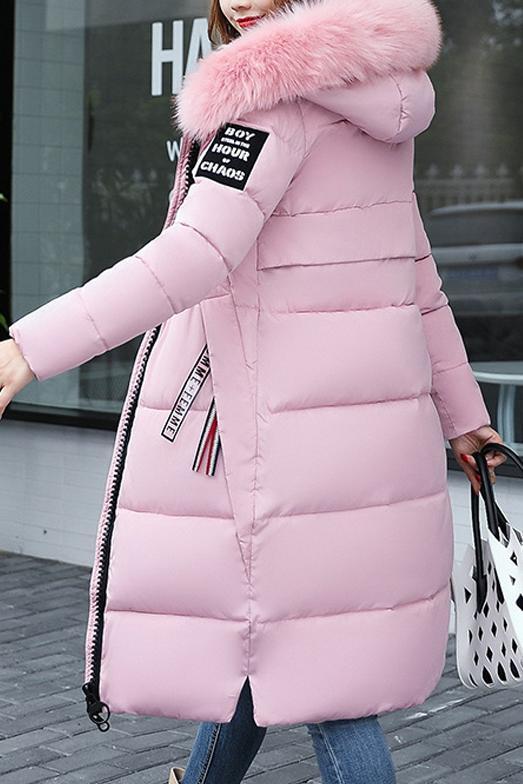 Ladies Casual Warm Large Fur Collar Hooded Jacket