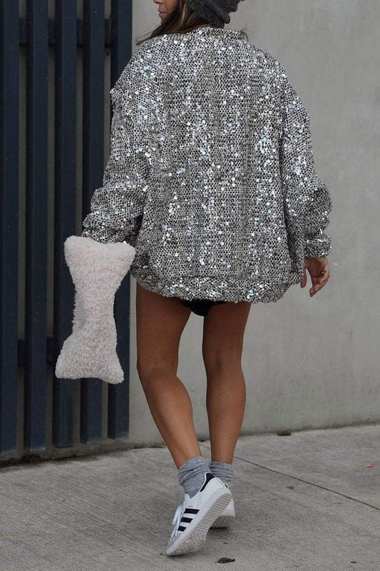 Ladies Casual Sequined Contrast Cardigan Jacket