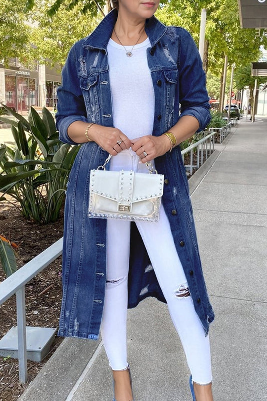 Women's Slim Fit Washed Short Long Sleeve Denim Jacket