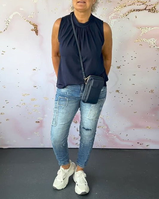Lässige ärmellose Bluse mit Stehkragen in einfarbig