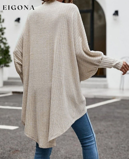 Pergamentfarbener, breiter Rippstrick-Cardigan mit Fledermausärmeln