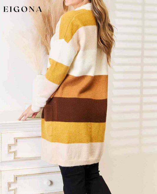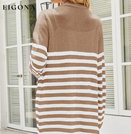 Lange, lässige, gestreifte, neue, lockere, langärmlige Mantelpullover-Strickjacke