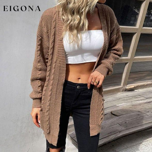 Gewebter, vorne offener Cardigan mit Zopfmuster und Vordertaschen