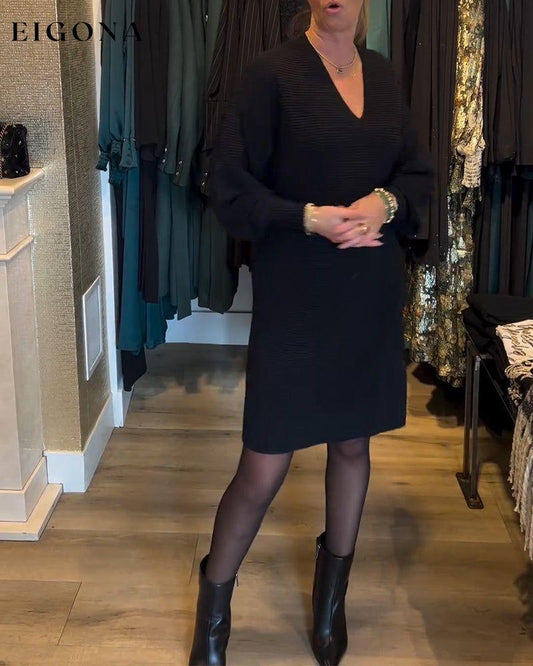 Einfarbiges Pulloverkleid mit V-Ausschnitt