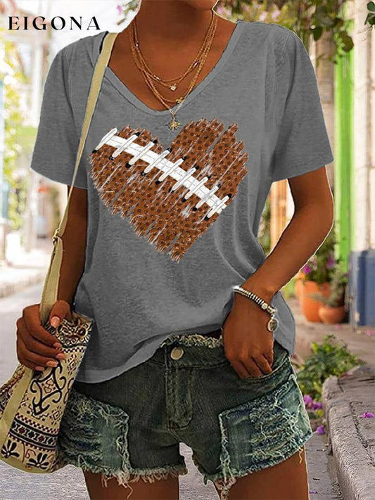 Lässiges Damen-T-Shirt mit Fußball-Herz-Print und V-Ausschnitt