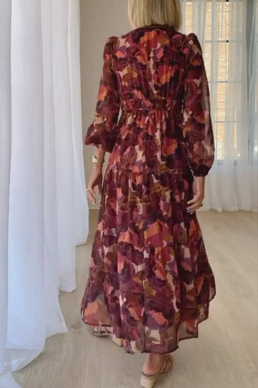 Langärmliges Kleid mit Blumenmuster und V-Ausschnitt für Damen