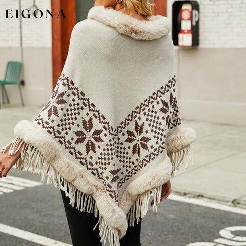 Geometrischer Poncho mit Umhangärmeln und Fransen