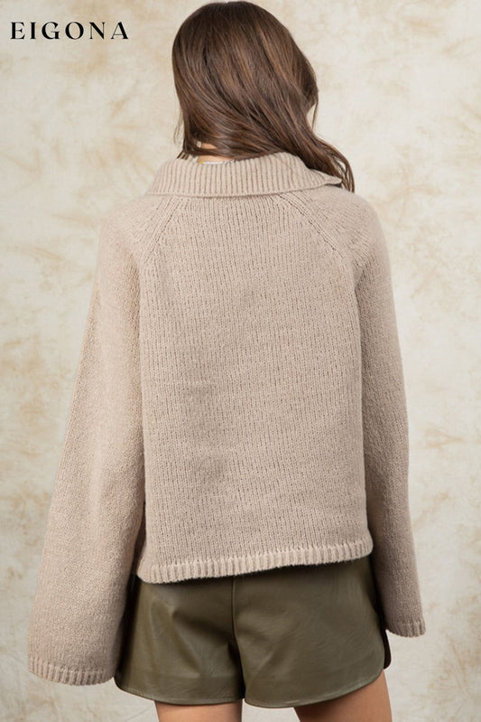 Rauchgrauer Pullover mit weiten Ärmeln und hohem Kragen und seitlichen Knöpfen