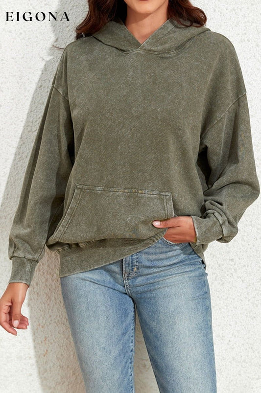 Salbeigrüner Kapuzenpullover mit Kängurutasche in Vintage-Waschung