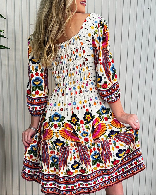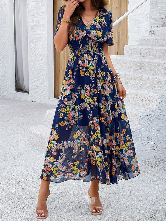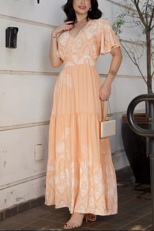 Bedrucktes Damenkleid mit V-Ausschnitt