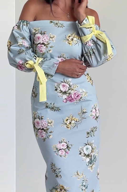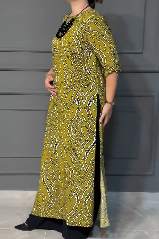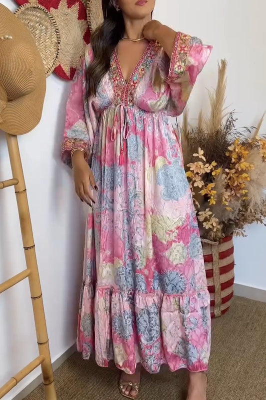 Bedrucktes Langärmliges Kleid mit V-Ausschnitt für Damen