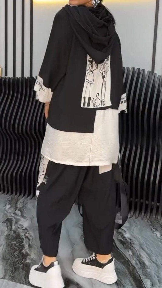 Bedruckte kontrastierende Oberteile und Hosenanzüge für Damen