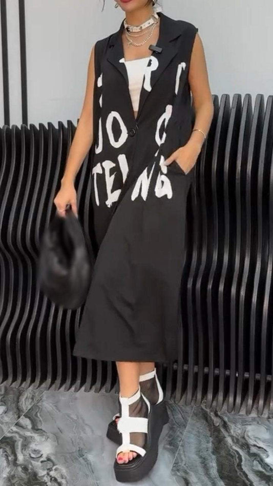 Ärmelloses Kleid mit bedrucktem Revers für Damen