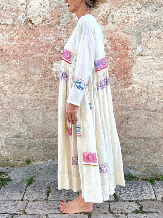 Bedrucktes Kleid aus Baumwolle und Leinen für Damen