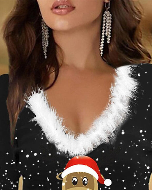 Fashion Lace V-Neck Long Sleeve Satin Blouse