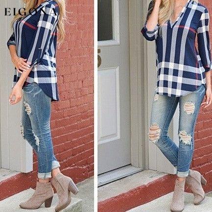 Damen-Basic-Langarmshirt mit lockerem Karomuster