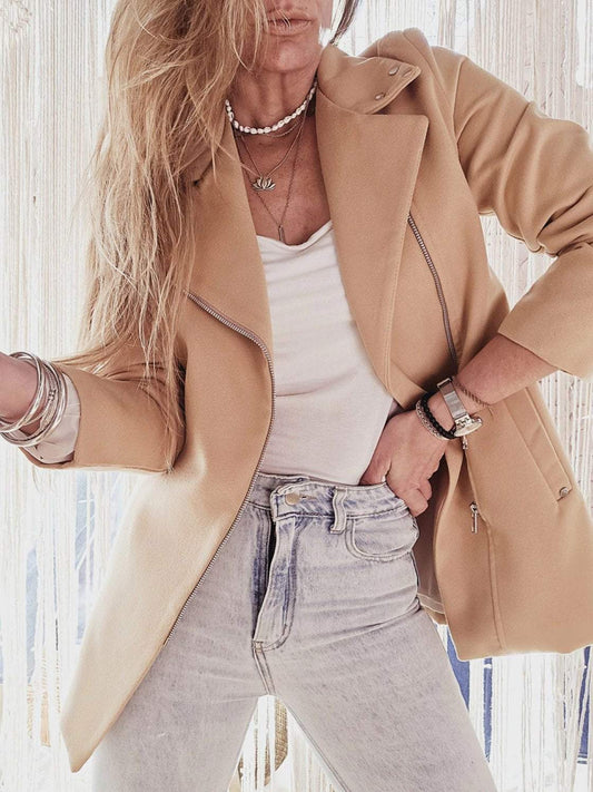 Lässiger, einfarbiger Reißverschlussmantel für Damen
