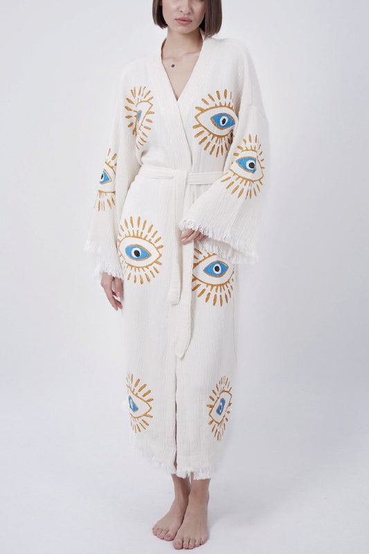 Kimonobluse mit „Evil Eye“-Print für Damen