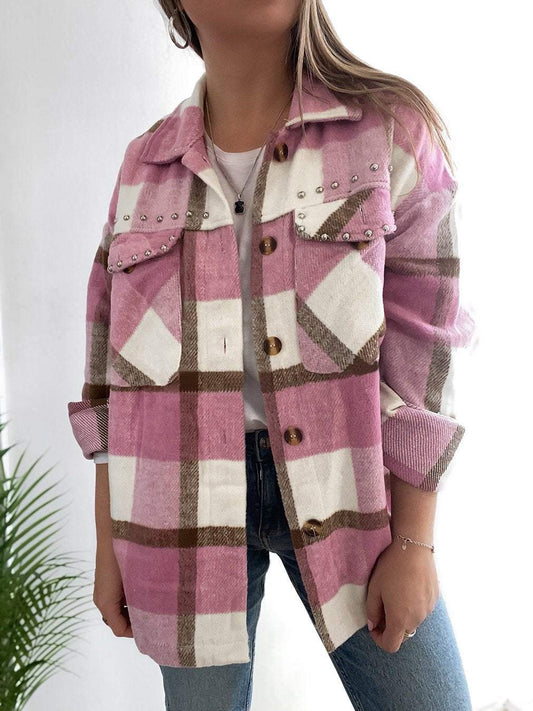 Lässige, mit Perlen verzierte Karojacke für Damen