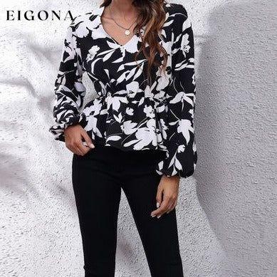 Geblümte Schößchenbluse mit V-Ausschnitt und Ballonärmeln