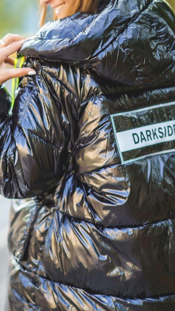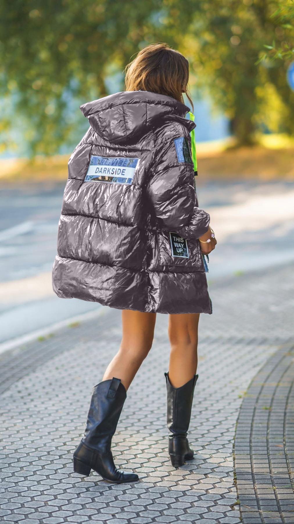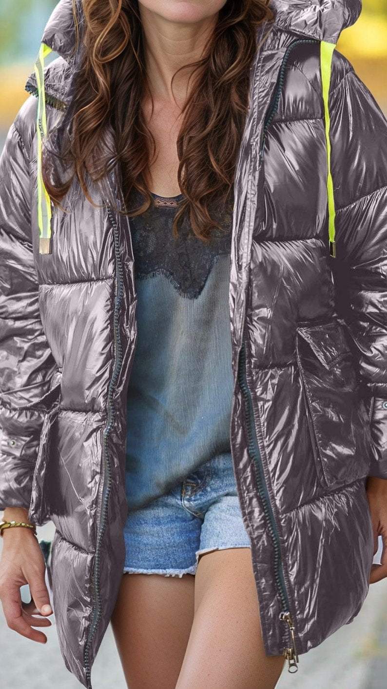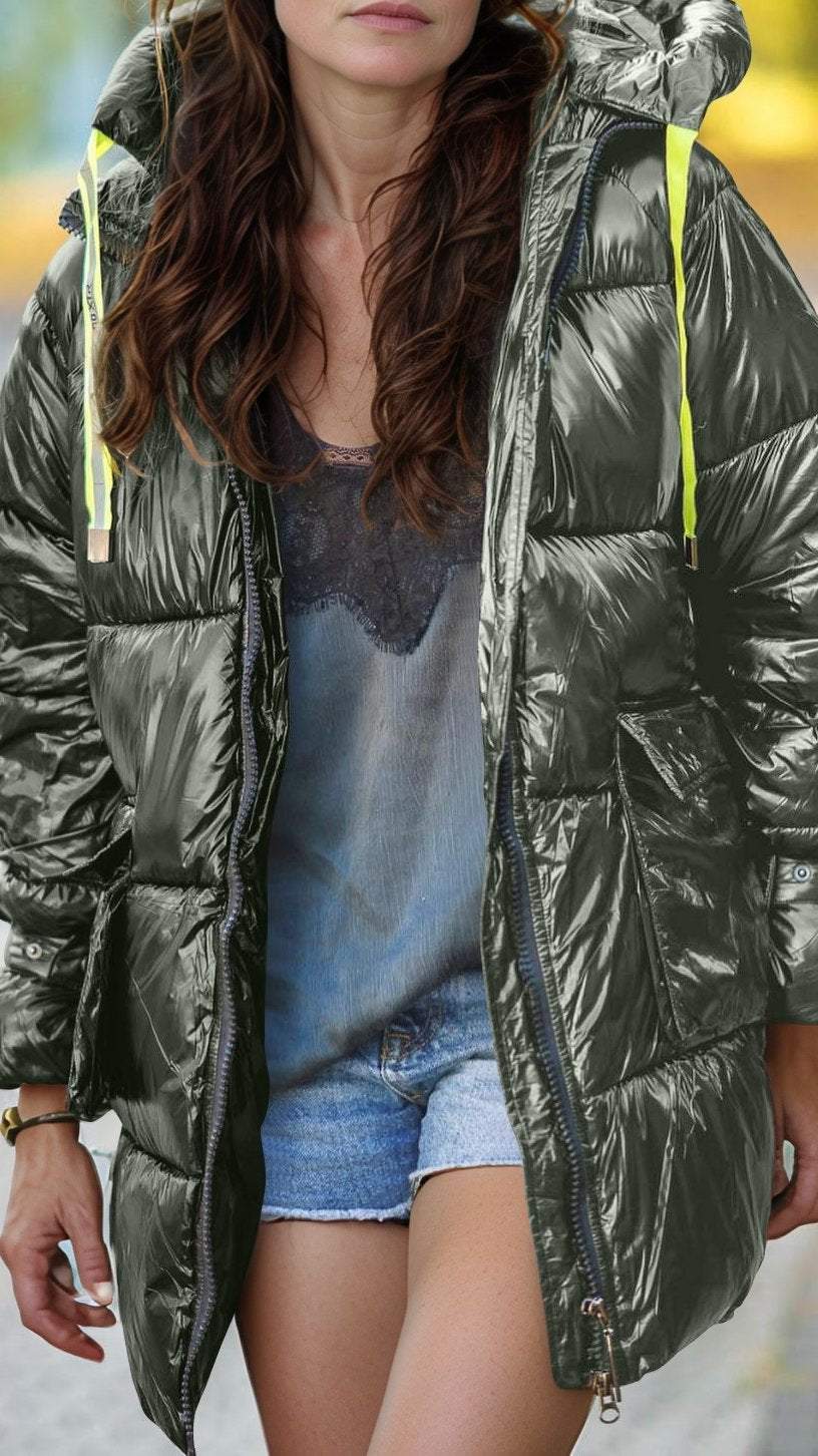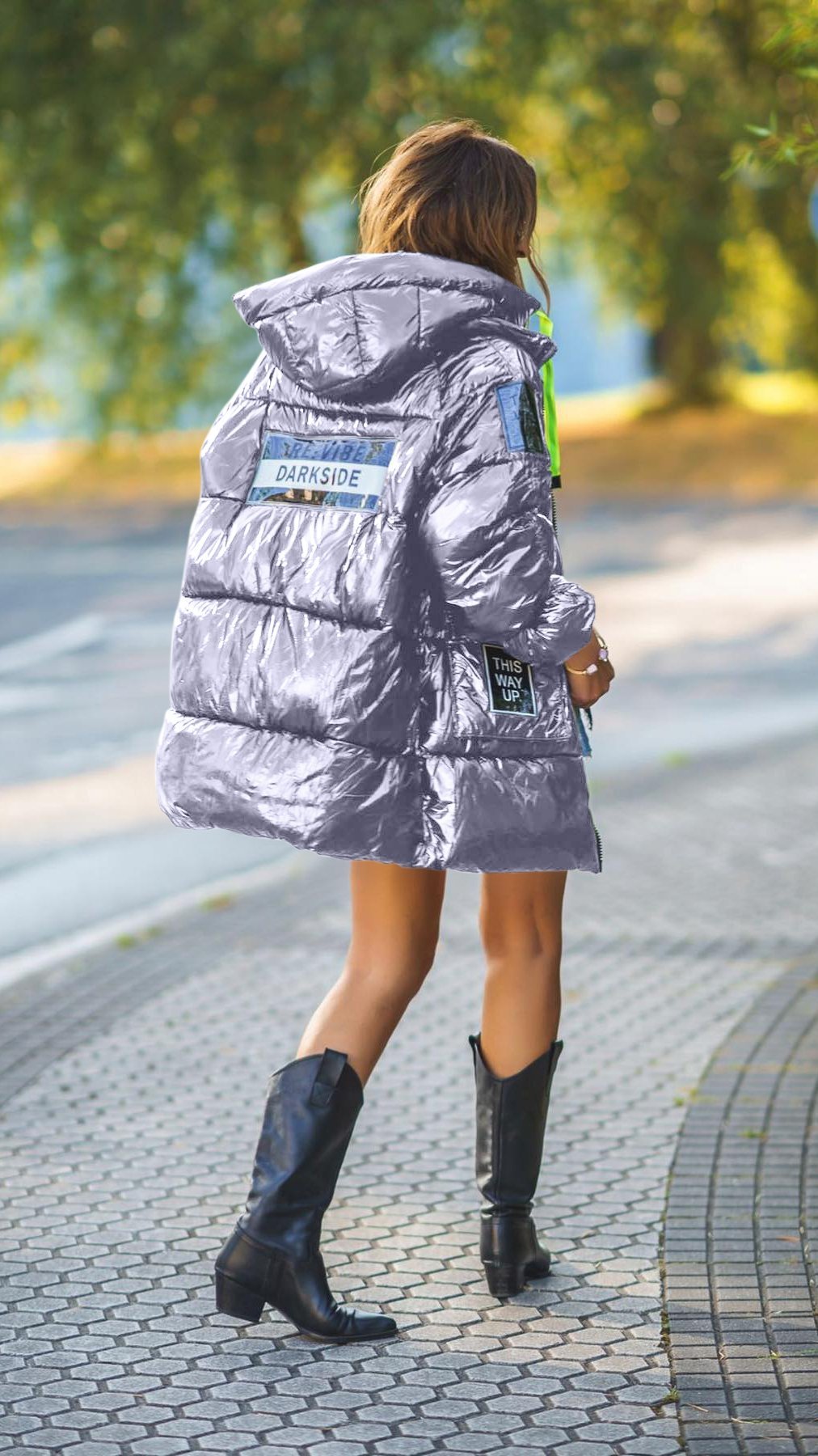 Lässige, warme Baumwolljacke für Damen mit glänzendem Buchstaben-Print und Kapuze