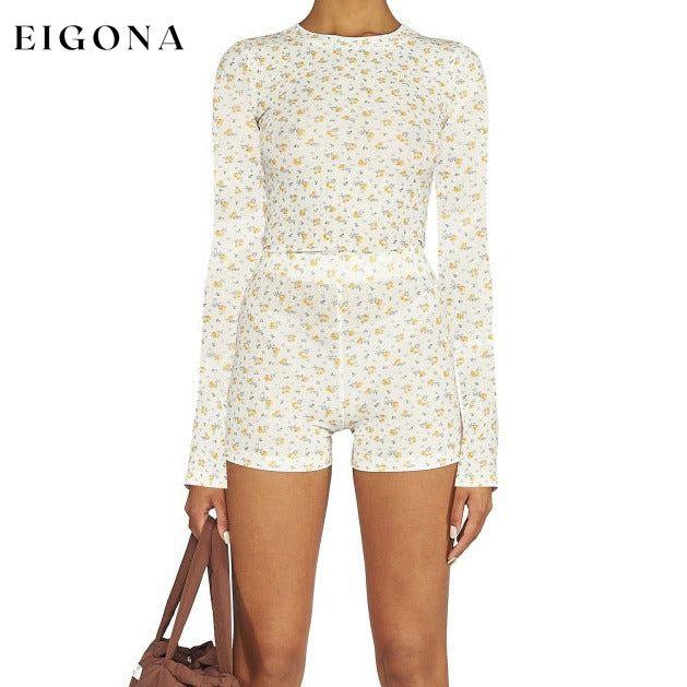 Lässiges zweiteiliges Damen-Set mit Rundhalsausschnitt, bedruckt, hoher Taille