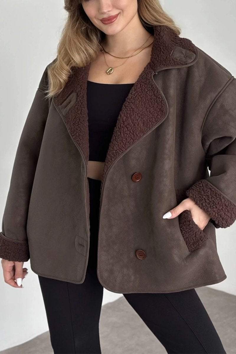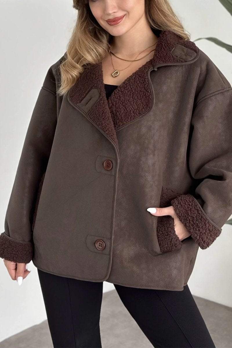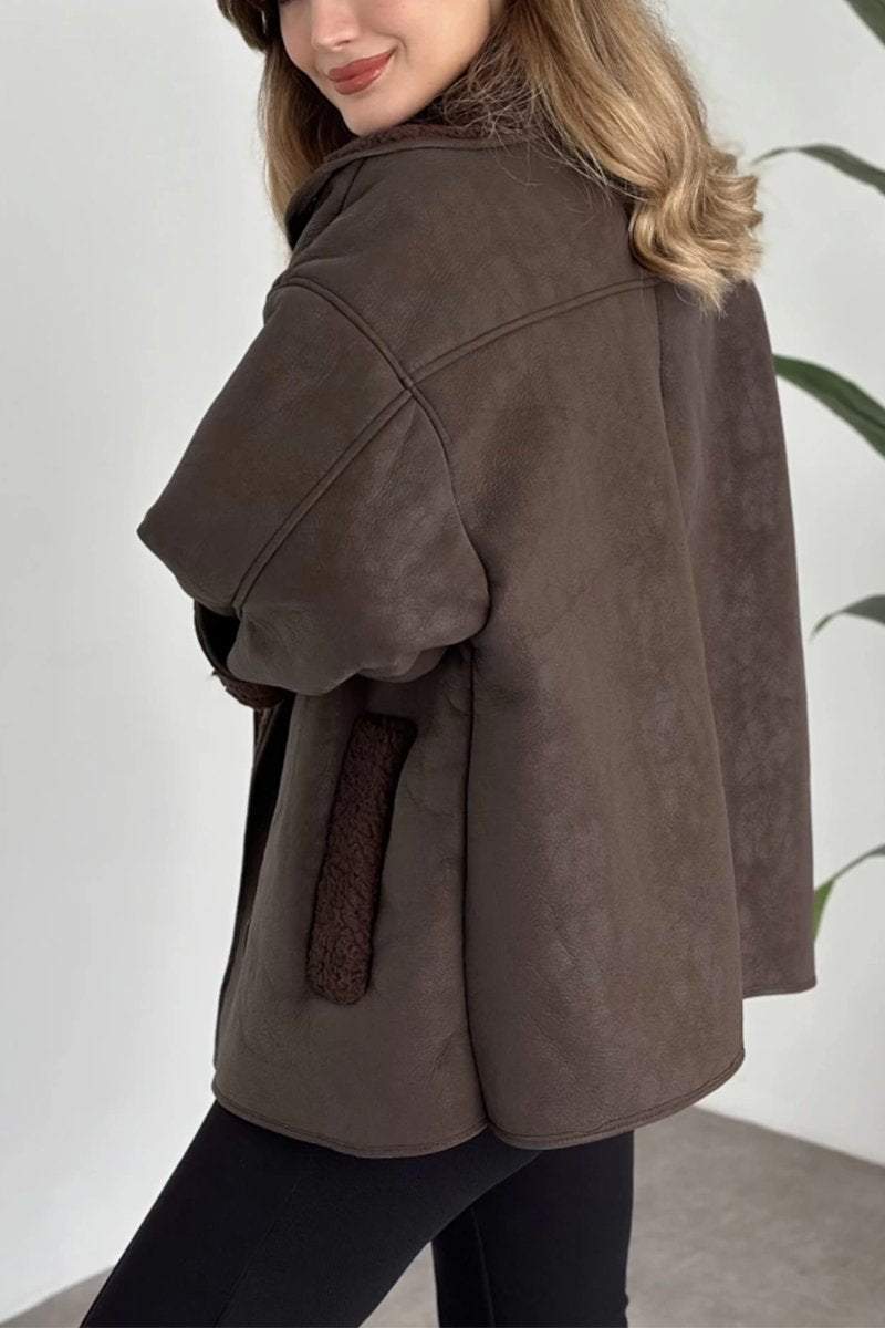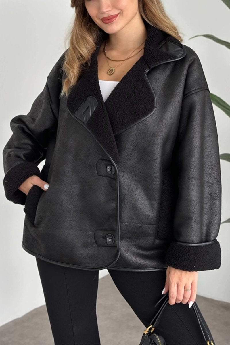 Lässige einreihige Lederjacke mit Revers für Damen