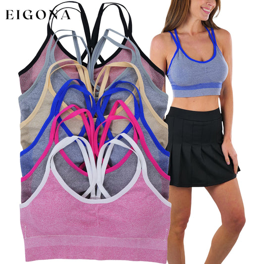 6-Pack: Women's Contrast Straps and Trim w/Strappy Back Wire Free Padded Sport Bralettes