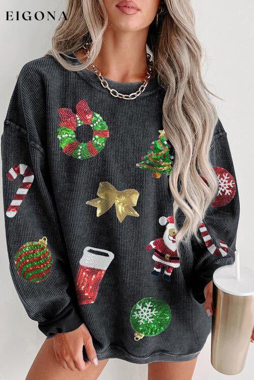 Sequin Santa Round Neck Slit Christmas Sweatshirt