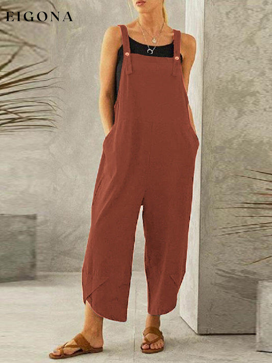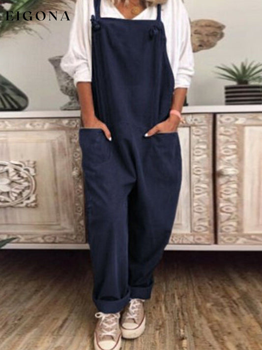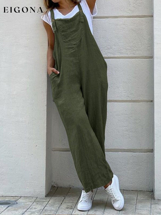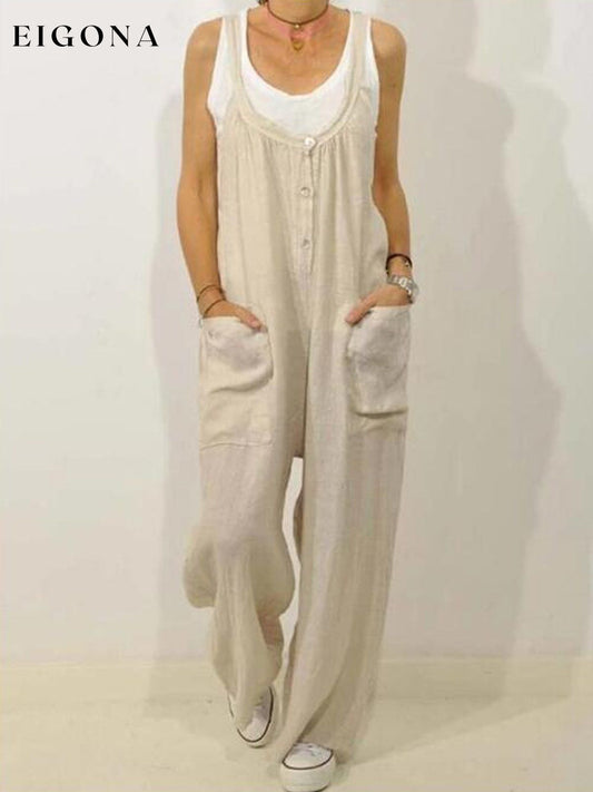 Women's Casual Pure Color Shirring Wide Leg Jumpsuit