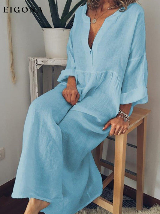 Women's Casual Round Neck Solid Color Cotton and Linen Dress