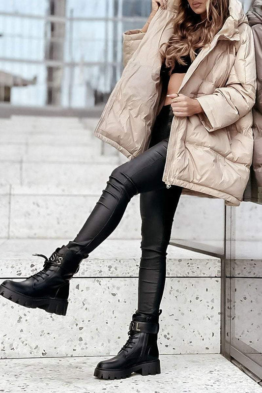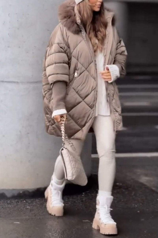 Women's Hooded Long-sleeved Autumn and Winter Diamond Patchwork Cotton Jacket