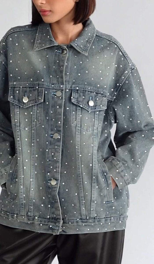 Women's Casual Lapel Single-breasted Shiny Denim Jacket