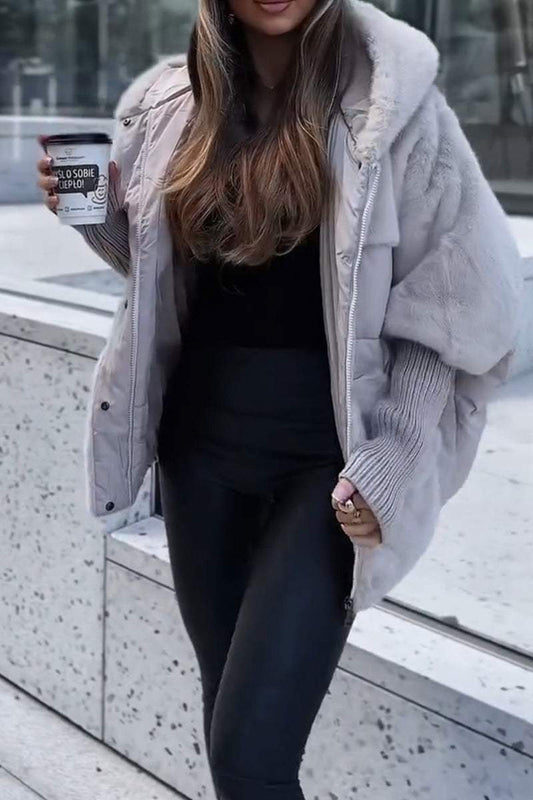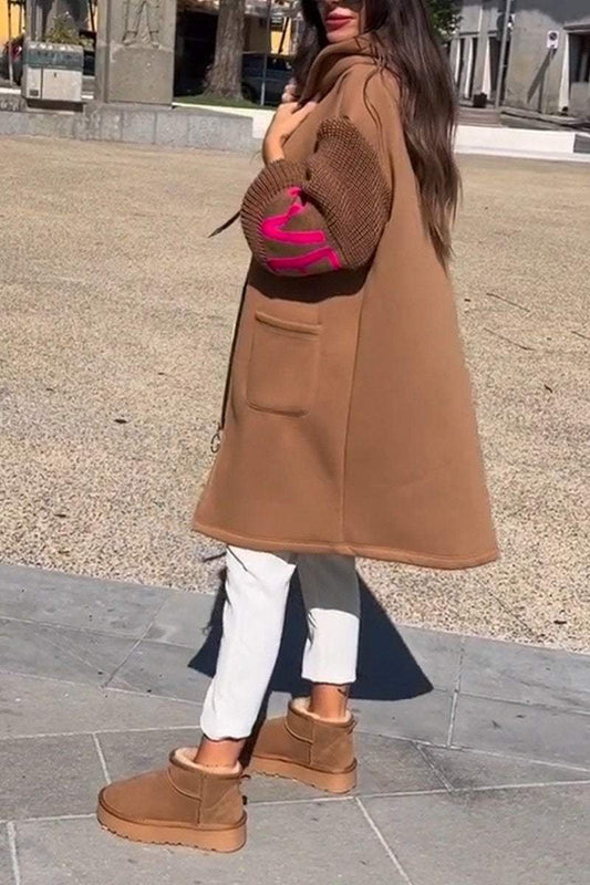 Women's Hooded Long Sleeve Knitted Sleeves Patchwork Casual Jacket