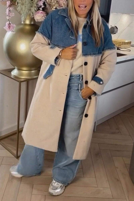 Women's Lapel Single-breasted Denim Patchwork Jacket