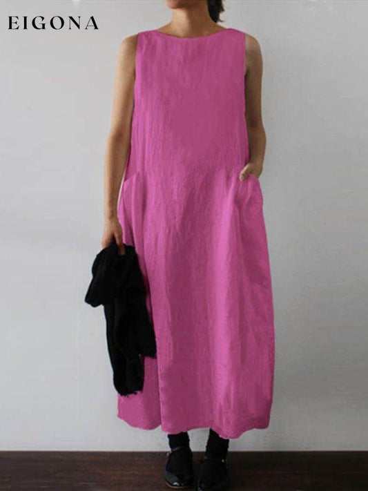 Solid Color Sleeveless Cotton And Linen Dress