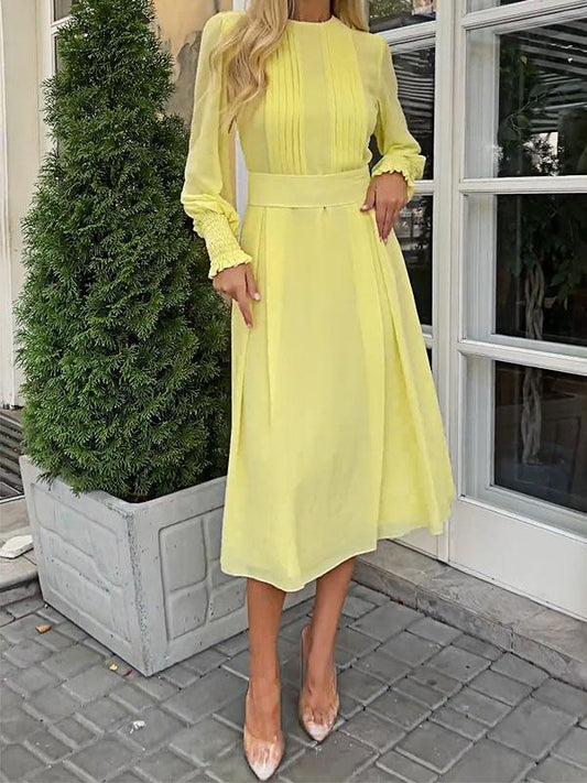 Women's Solid Color Cotton Linen Round Neck A-Line Dress