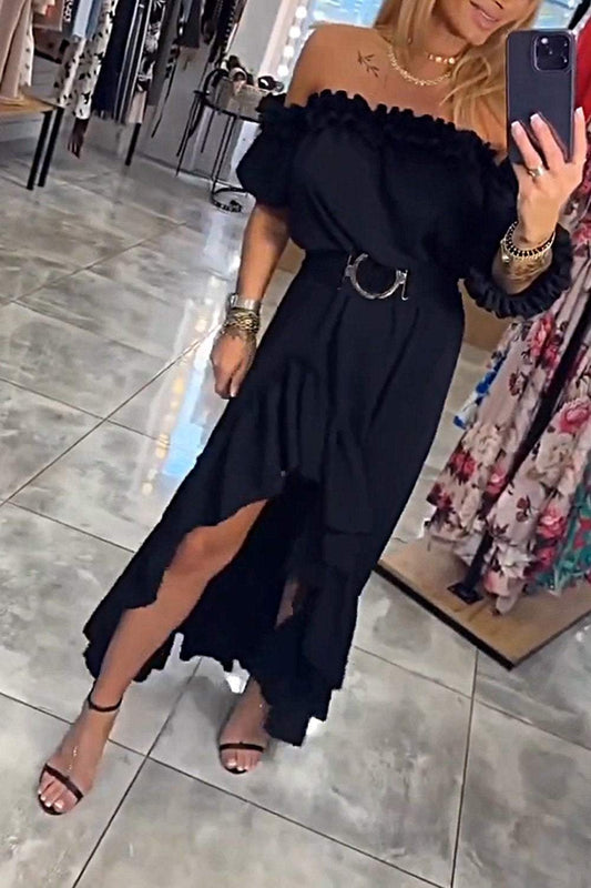 Women's Solid Color Flower Strapless Asymmetric Ruffle Mini Dress