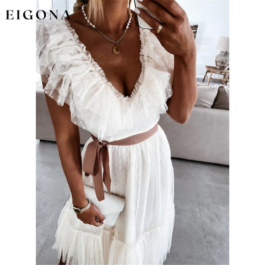 Women's V-neck Solid Color Short-sleeved Chiffon Waist Dress