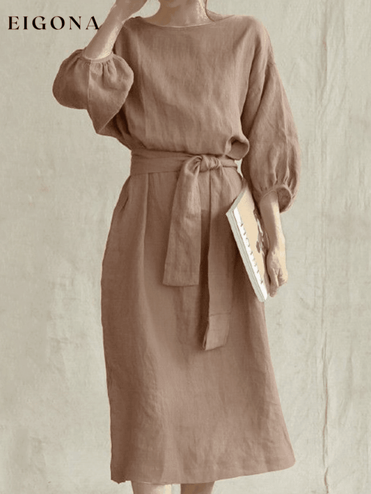Women's High Waist Lace Up Solid Color Round Neck Dress